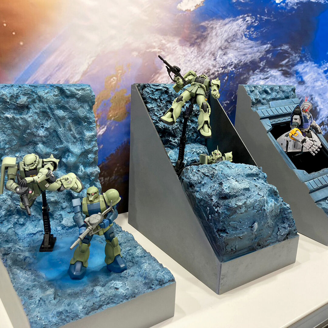 エディオンなんば本店7Fキッズパークのガンプラ展示を『REVOLVER』『REVOLVER RUDE』メンバー制作による「機動戦士ガンダム」ア・バオア・クー攻略戦のジオラマ作品に入れ替えました
