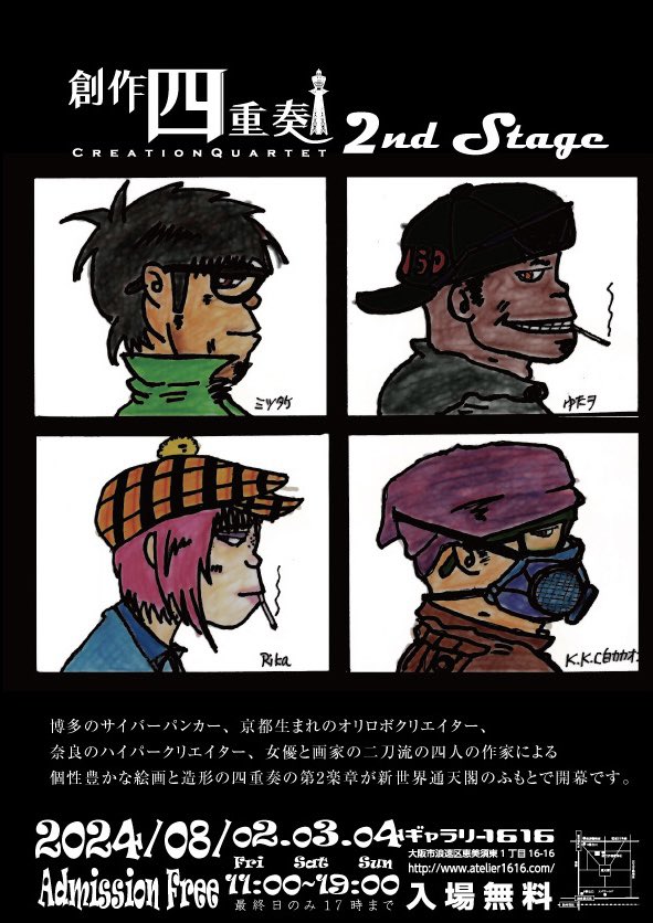 2024年8月2日(金) – 4日(日)の間、大阪通天閣の麓ギャラリー1616で開催される、「創作四重奏 2nd Stage」にREVOLVER・ミツタケが出展します。 博多のサイバーパンカー、京都生まれのオ...