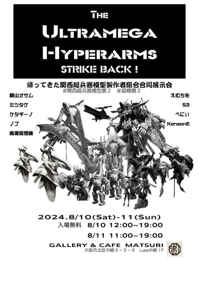 2024年8月10日(土) – 11日(日)の2日間、大阪北区中崎町のギャラリーカフェMATSURIで開催される、「帰ってきた関西超兵器模型製作者組合合同展示会」にREVOLVER・ミツタケが出展します 80年代 ...