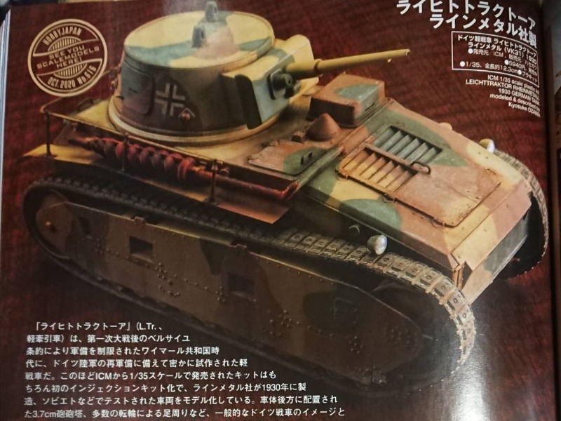 ライヒトラクトーア ラインメタル社製ハセガワ 1/35 ドイツ軽戦車 ライヒトトラクトーア ラインメタル (VK31) 1930 実はこれが本業だったりします(笑) 迷彩は筆で頑張って書いたので是非ご覧ください 月刊ホビ...