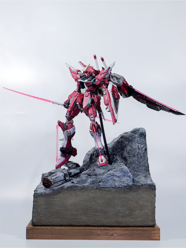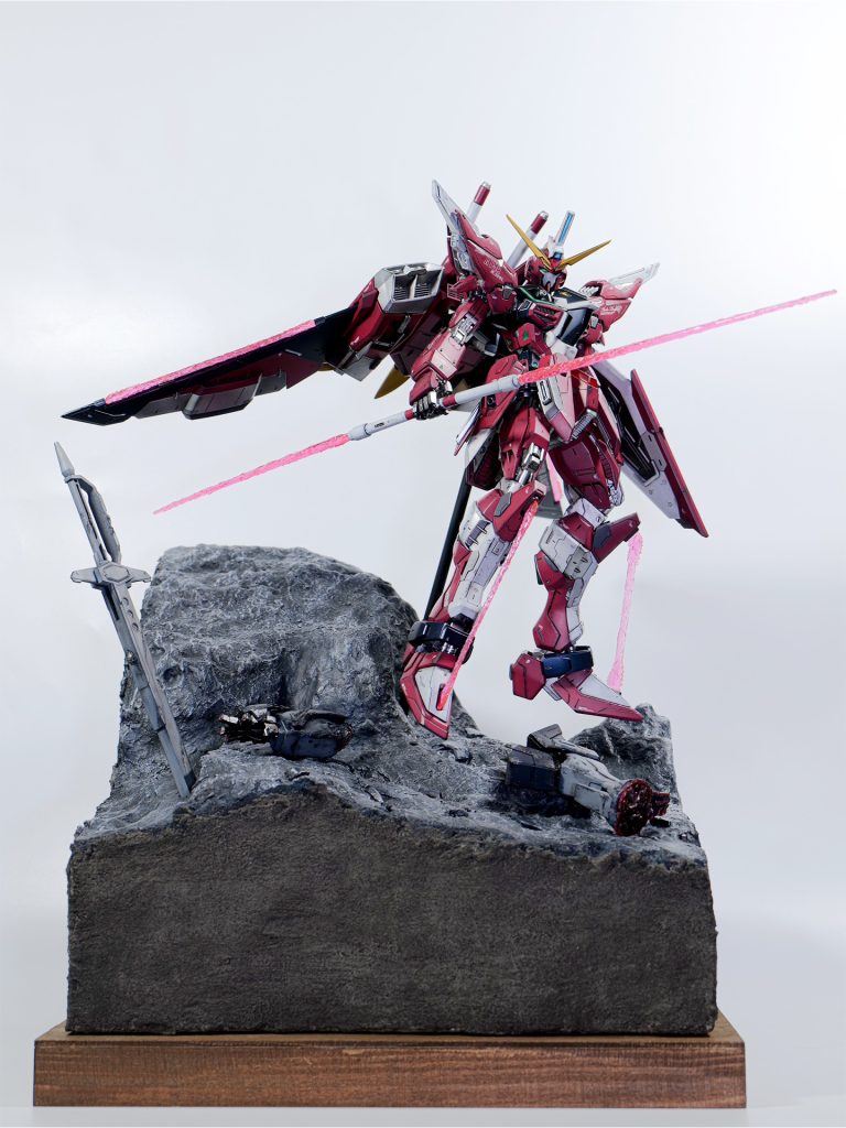 SEED DESTINYにおける最終決戦のメサイア攻防戦で、デスティニーに勝利したインフィニットジャスティスをシン視点でイメージしてジオラマを製作しました!