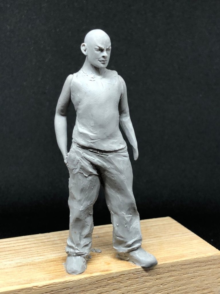 ポージングが決まれば肉を足していきながら、衣類の造形もしていきます。
