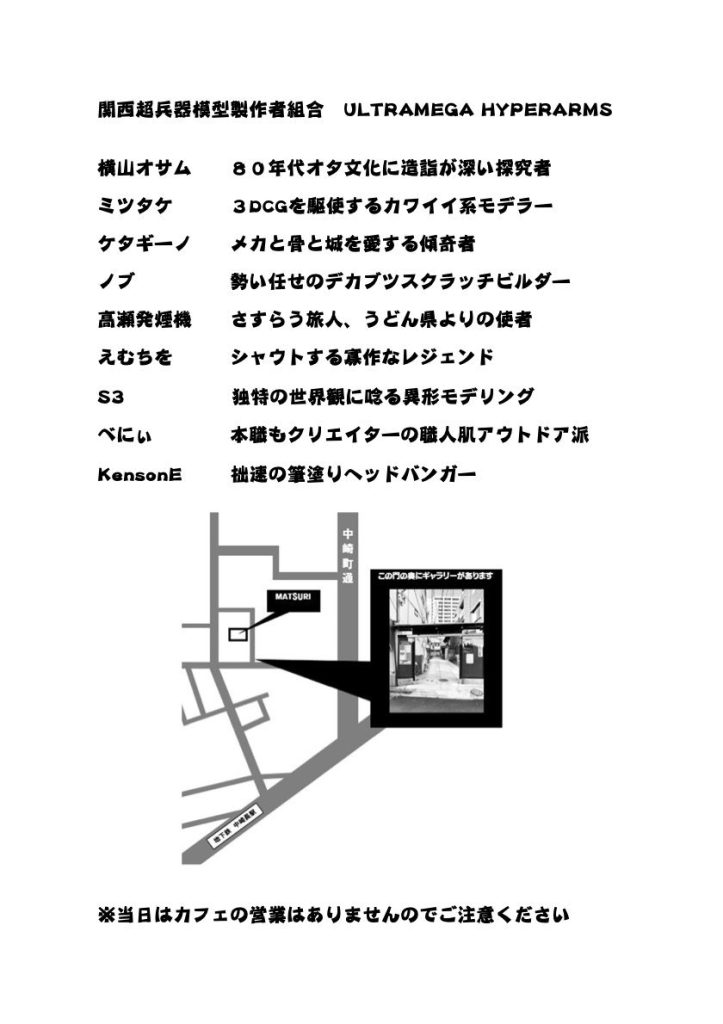 2024年8月10日(土) – 11日(日)の2日間、大阪北区中崎町のギャラリーカフェMATSURIで開催される、「帰ってきた関西超兵器模型製作者組合合同展示会」にREVOLVER・ミツタケが出展します